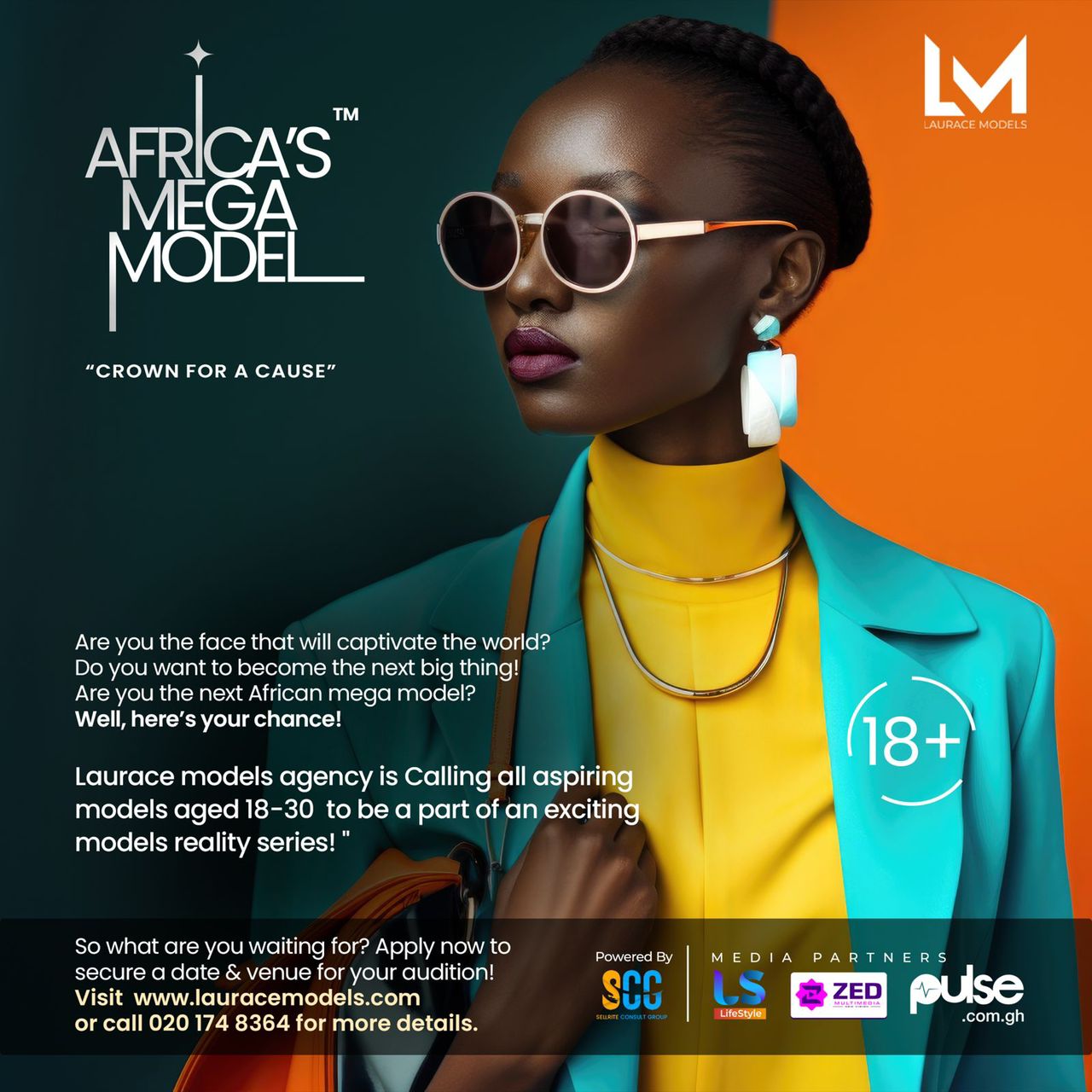 BECOME “AFRICA’S MEGA MODEL” NOW Apply NowAre you the face that will captivate the world? Do you want to become the next big thing! Are you the next African mega model? Well, here’s your chance! Laurace models agency is Calling all aspiring models aged 18-30 to be a part of an exciting models reality series! ” So what are you waiting for? Apply now to secure a date & venue for your audition!